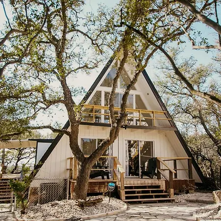 Villa New - Unique A-Frame In Canyon Lake de 12 m^2 est située à 10 minutes en voiture de Fawncrest Vineyard, et à 54 minutes de l'aéroport international de San Antonio. La villa comprend un espace de repas, un canapé et une cafetière/théière dans les chambres.